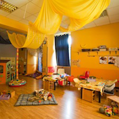 Il nido ospita bambini da 3 a 36 mesi e si articola in tre sezioni: